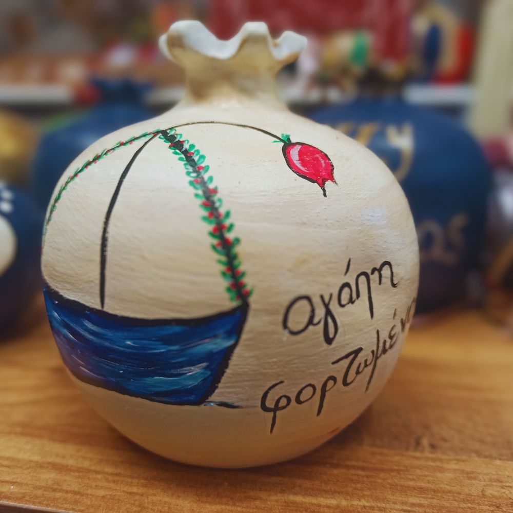 Κεραμικό ρόδι ζωγραφισμένο με καράβι