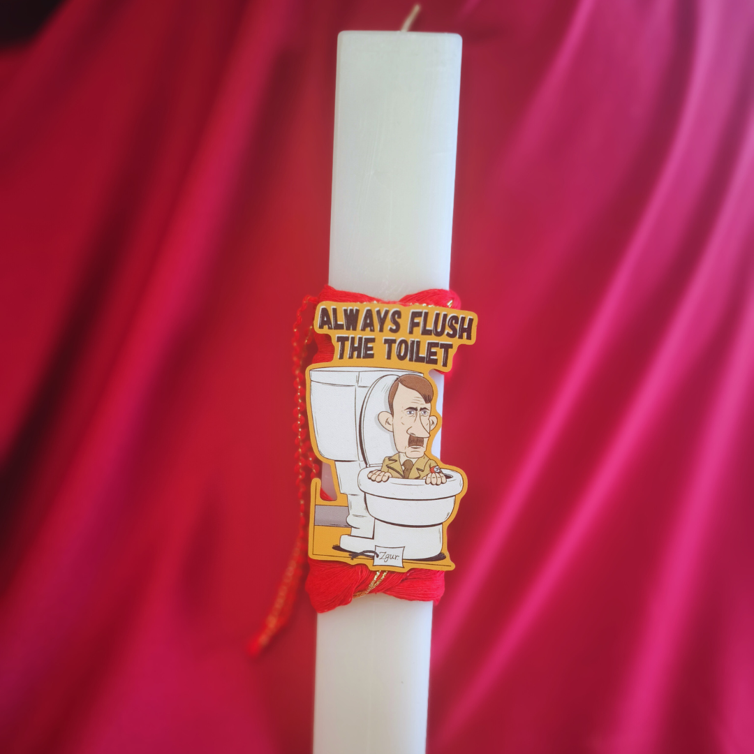 Η λαμπάδα “Flush the Toilet” λειτουργεί σαν υπενθύμιση: μερικά πράγματα –και πρόσωπα– δεν πρέπει να επιστρέψουν. Ούτε καν σαν ανέκδοτο.
