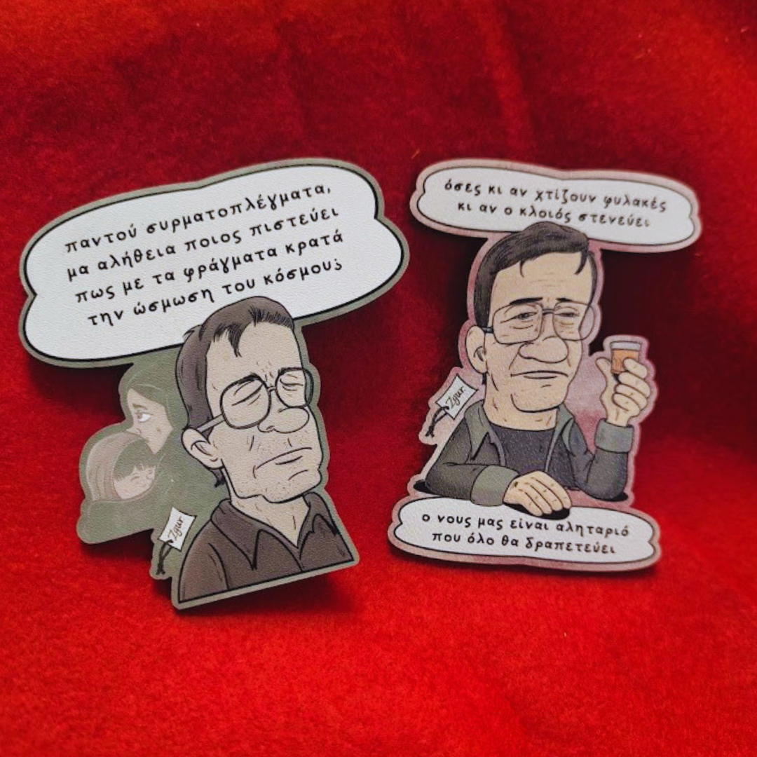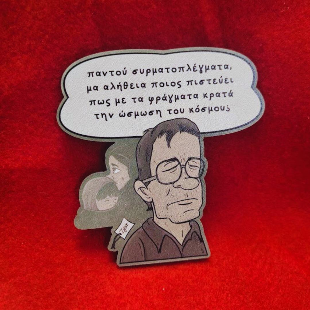 σε δύο σχέδια: απο το τραγούδι Ο Χομαγιούν και ο Βακάρ :” Παντού συρματοπλέγματα, μα αλήθεια ποιος πιστεύει πως με τα φράγματα κρατά την ώσμωση του κόσμου”
