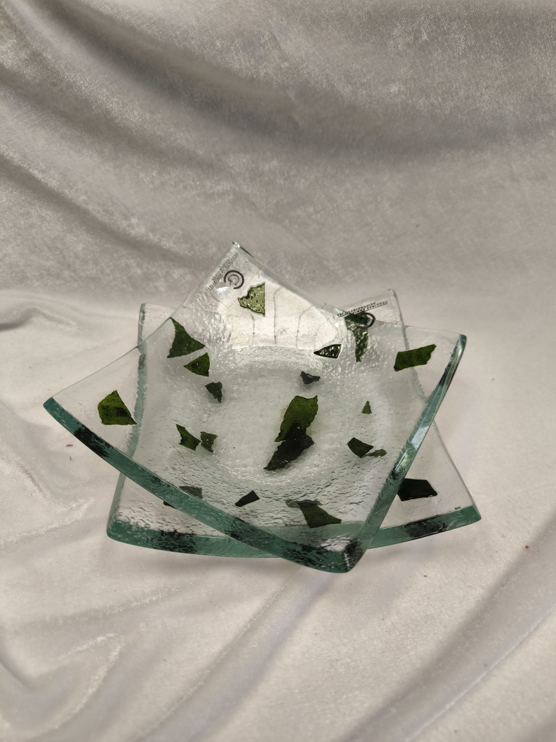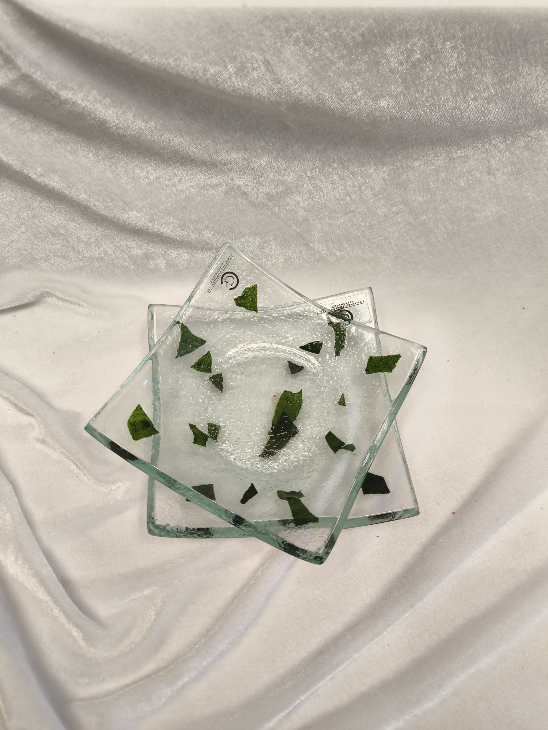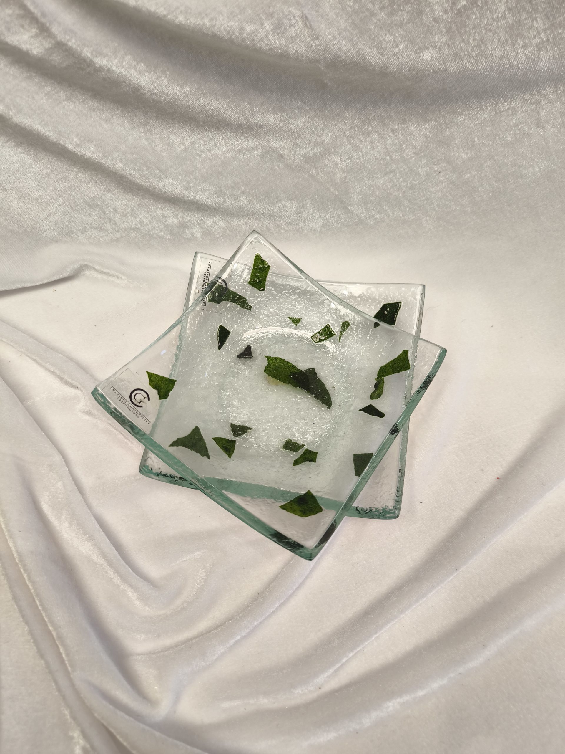 Αναδείξτε την αισθητική του χώρου σας με αυτό το χειροποίητο ΣΕΤ σταχτοδοχείων από φυσητό γυαλί. Το διαφανές σώμα του, εμπλουτισμένο με πράσινα διακοσμητικά στοιχεία, προσθέτει μία φρέσκια και κομψή πινελιά σε κάθε επιφάνεια. Επιπλέον, ανήκει σε ένα καλαίσθητο σετ από φυσητό γυαλί, το οποίο είναι ιδανικό τόσο για πρακτική χρήση όσο και για διακόσμηση.