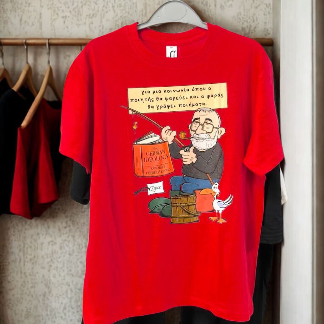 Ακολουθήσε μας στα social ώστε να μαθαίνετε πρώτοι τα νέα μας προϊόντα και, παράλληλα, να βιώνετε την (πολιτική και μη) καθημερινή μας σουρεαλιστική πραγματικότητα. Στο Facebook, φασίστες μπαίνουν συχνά για να μας κράξουν, όμως δεν πειράζει – κρατάμε την αντιπαράθεση ζωντανή, γιατί, όπως λέμε, είναι το αλάτι της ταξικής πάλης. Στο Instagramέχουμε πιο ωραίο γκρουπάκι, μαζεύουμε δικούς μας ανθρώπους και τα λέμε χαλαρά. Και στο TikTokθα δείτε χιουμοριστικά σκετσάκια για την ταξική πάλη, γιατί και η επανάσταση θέλει το γέλιο της!