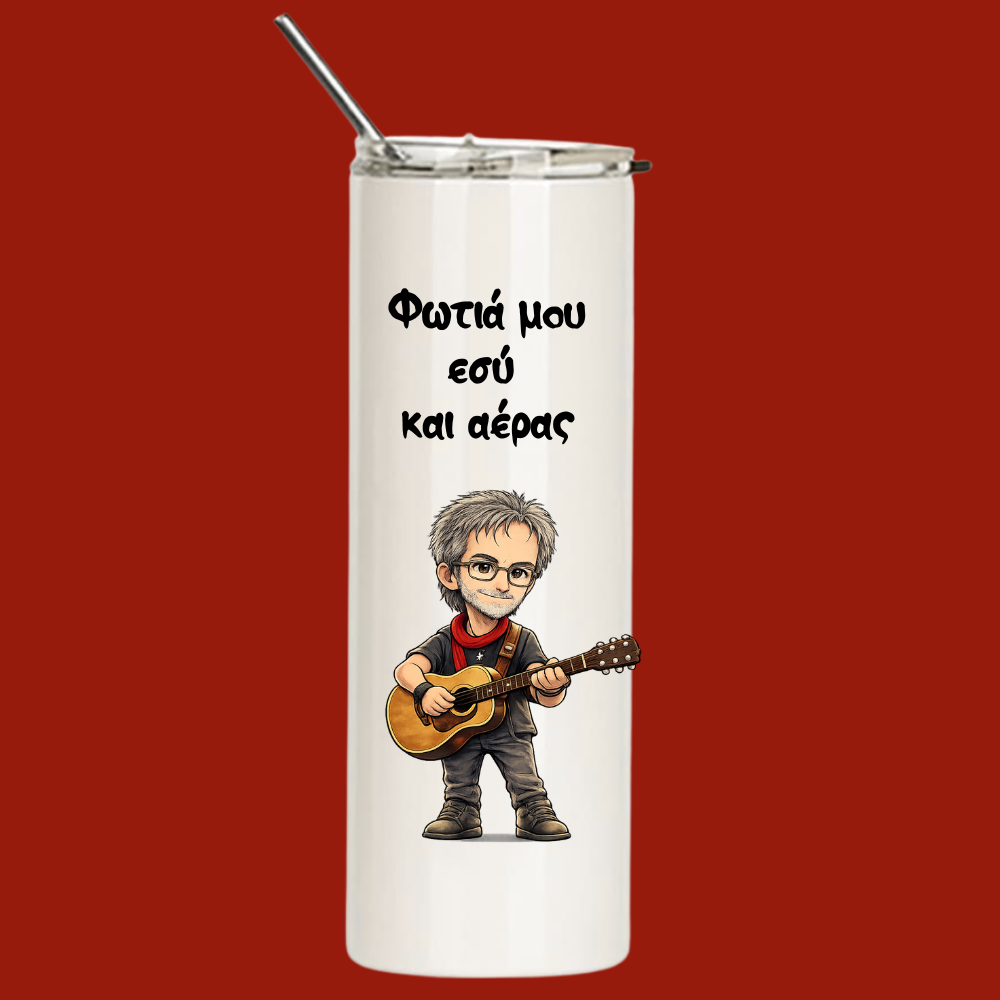 Ποτήρι θερμός με μεταλλικό επαναχρησιμοποιούμενο καλαμάκι. Αυτό το διπλού τοιχώματος μονωμένο ποτήρι κρατάει τα ροφήματα ζεστά ή κρύα.